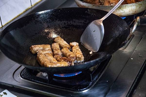 只要先熱鍋再加點油之後在把雞卷丟下去,煎到表皮呈現金黃色即可上菜瞜